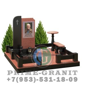 Основные составляющие мемориального комплекса это: надгробный камень, плита или цветник, цоколь, ваза, скамья, столик и плитка из карельского камня.
