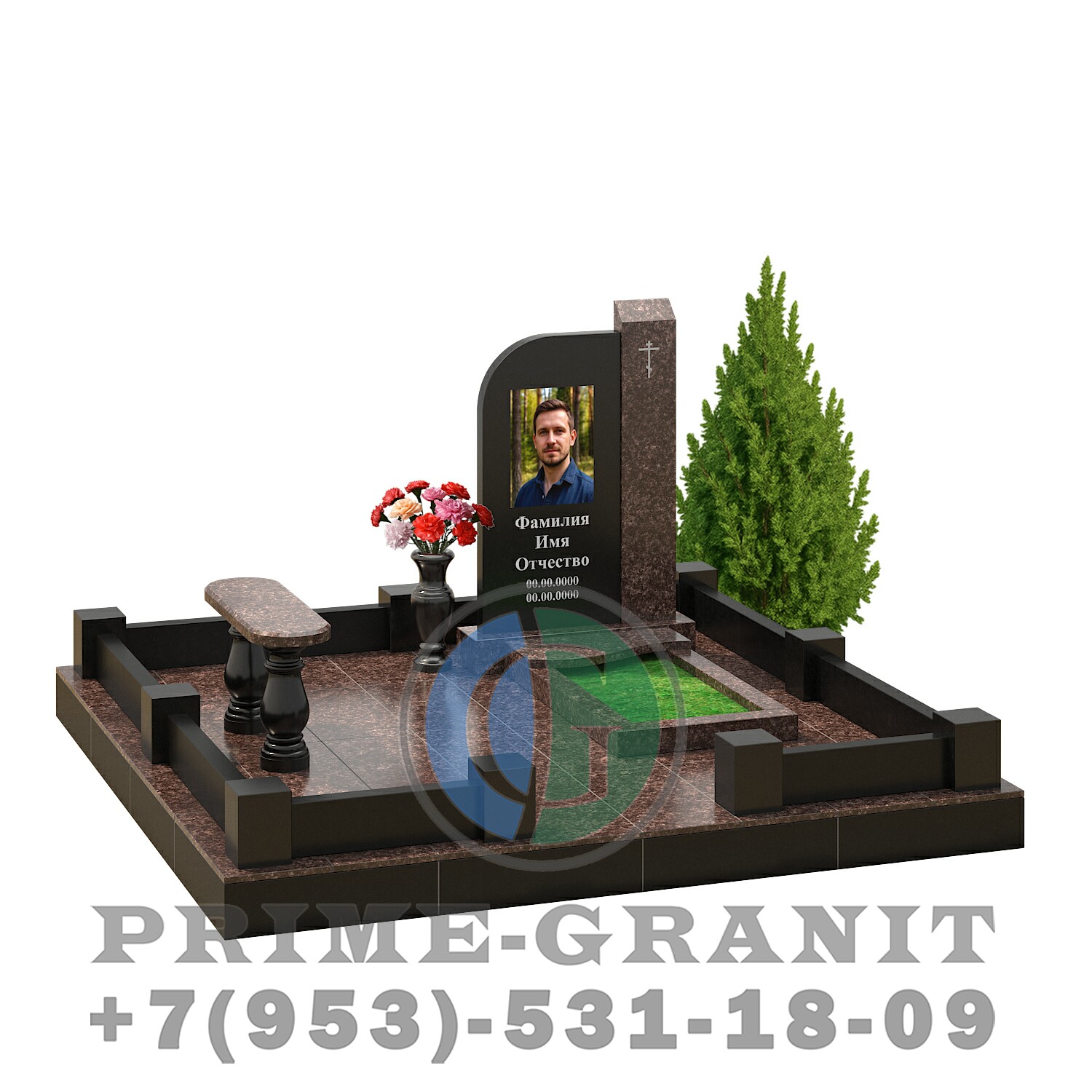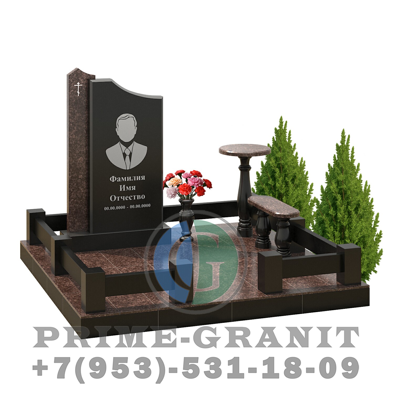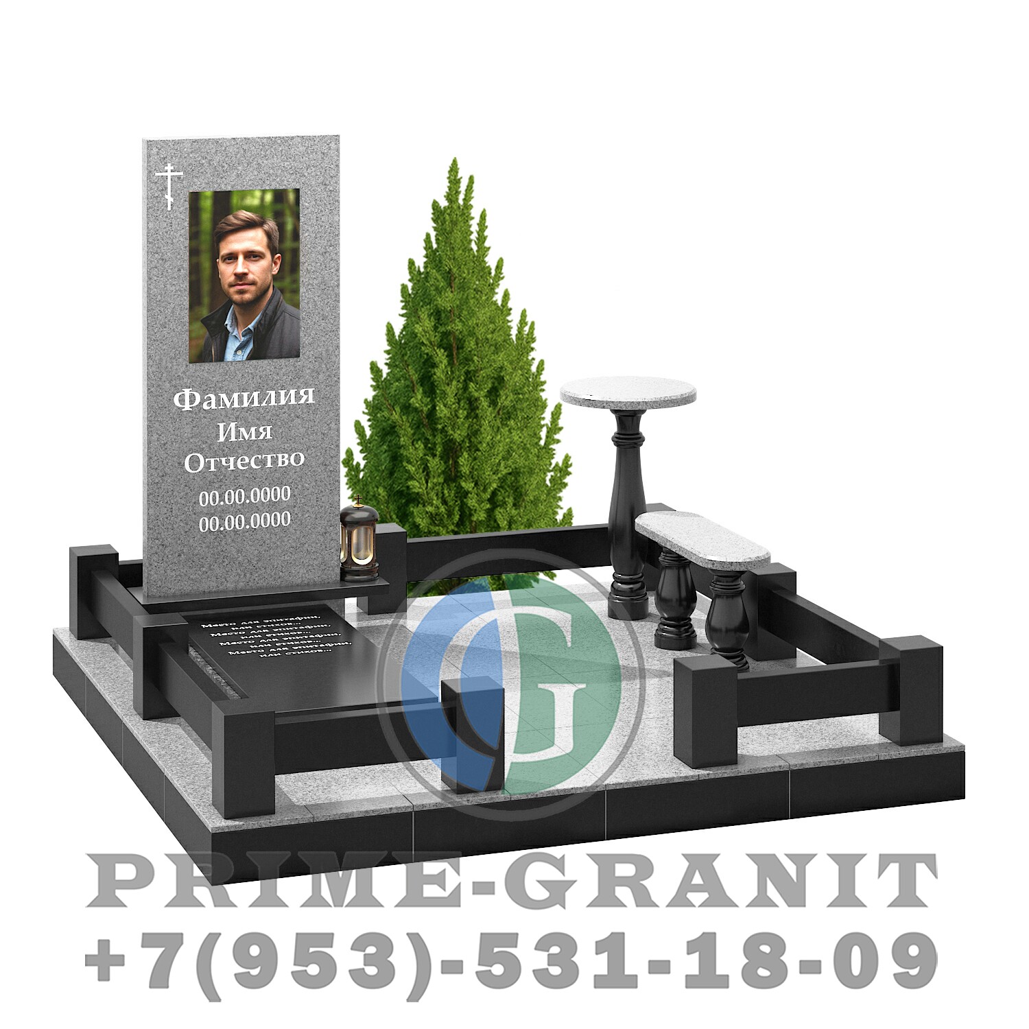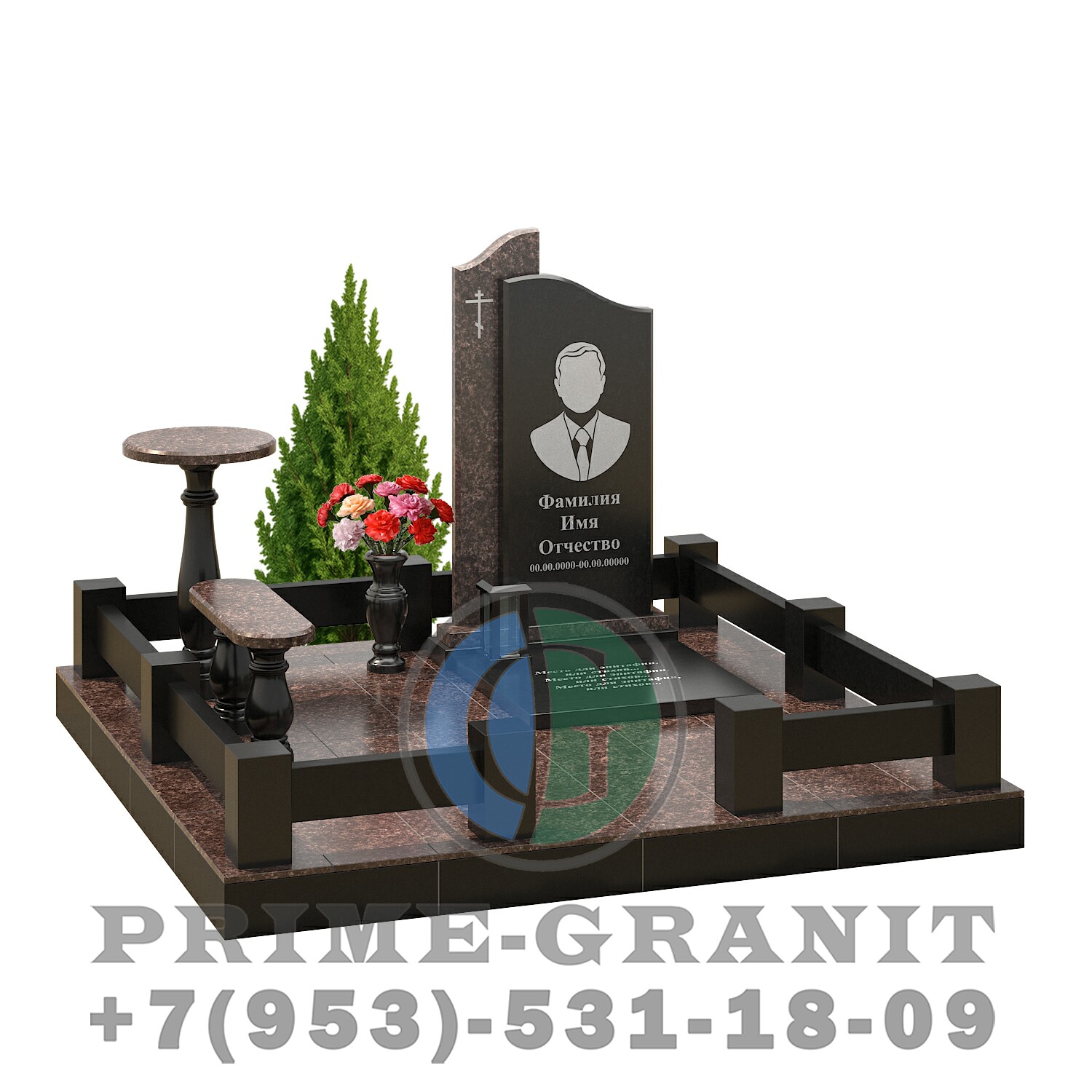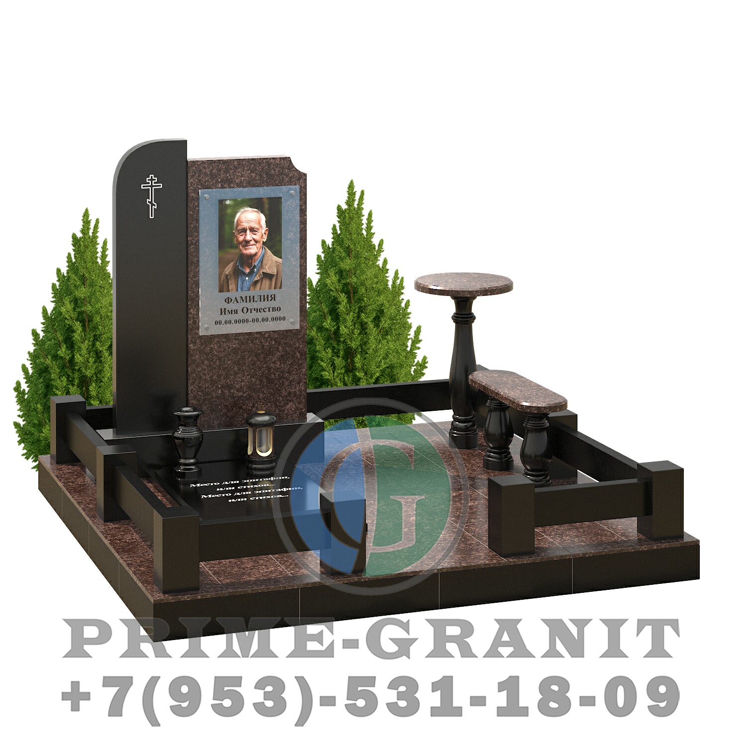 Основные составляющие мемориального комплекса это: надгробный камень, плита или цветник, цоколь, ваза, скамья, столик и плитка из карельского камня.