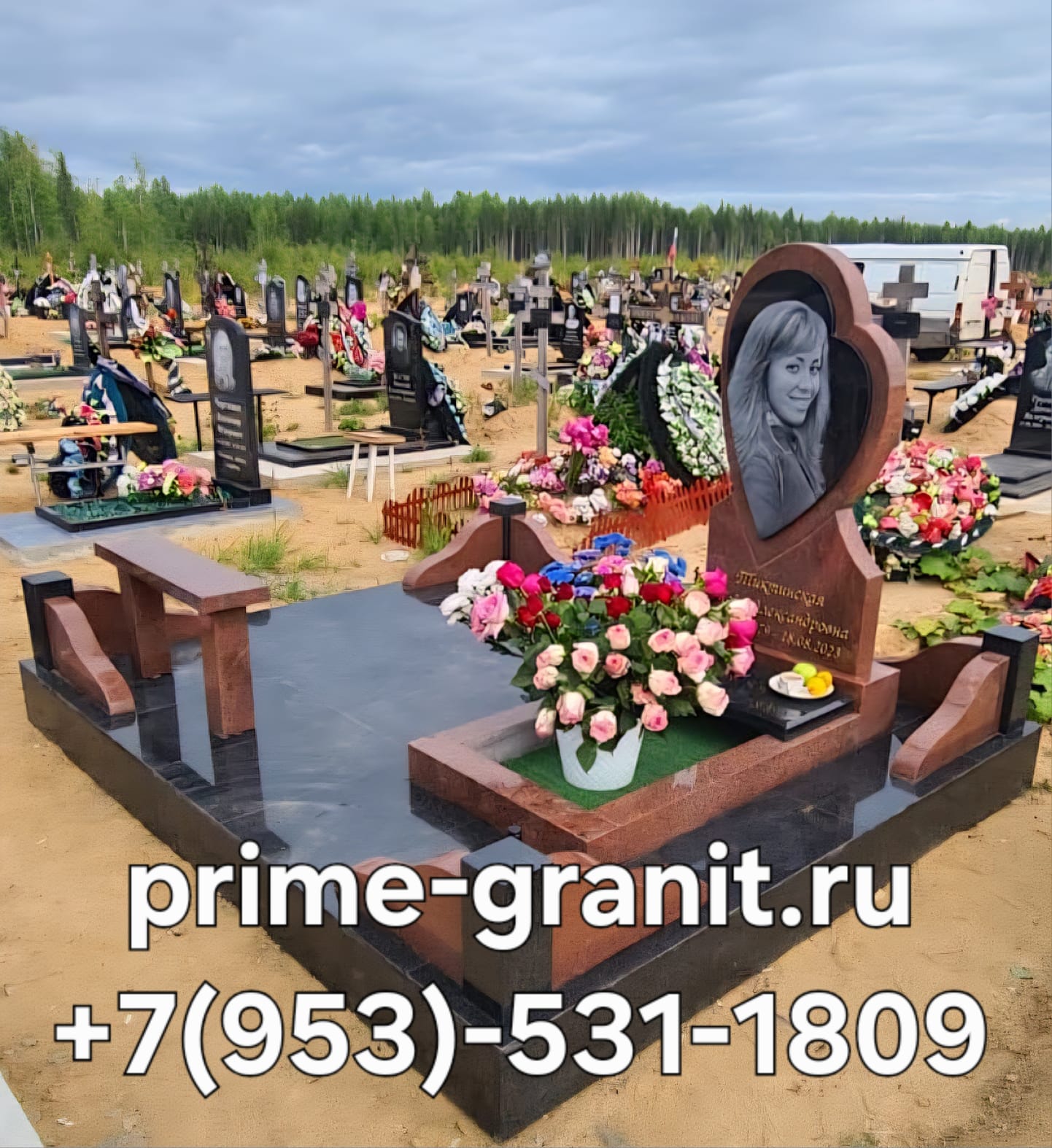 Памятник с сердцем из красного гранита