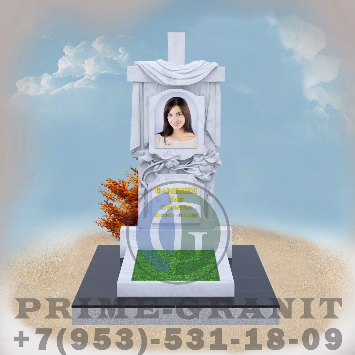 Материал: натуральный белый мрамор месторождение Коелга — символ чистоты, благородства и вечной памяти.