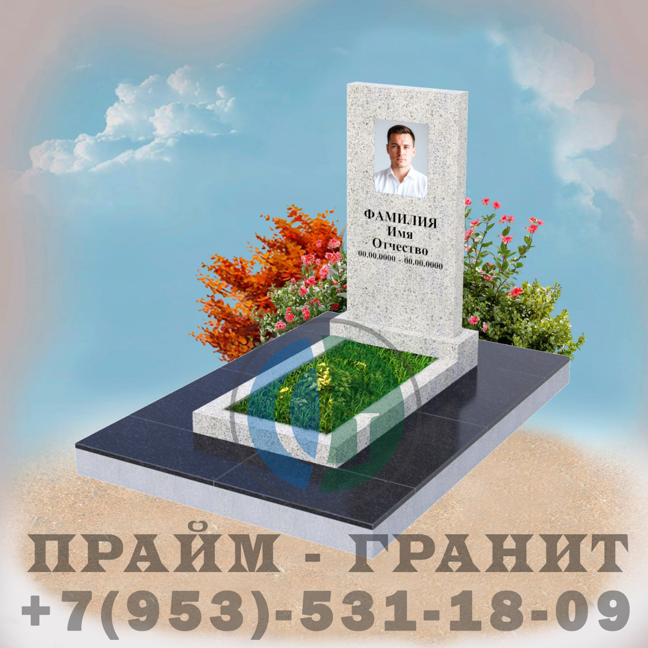 Купить памятник из мансуровского светлого гранита с цветной фотографией